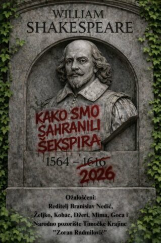 Dobar naslov je izuzetno značajan za svaku predstavu. Naša predstava se zove “Kako smo sahranili Šekspira”. Naslov koji obećava. Publika nema mnogo prilika da vidi Šekspira na sceni, tako da smo mi želeli da im na naš, poseban način približimo njegova celokupna dela. Grupa radnika u pozorištu, zbog “štrajka glumaca”, odlučuje da prikaže Šekspirova dela, na originalan i duhovit način, u skladu sa svojim mogućnostima… Maksimalno ozbiljno i skraćeno. U sat i deset minuta, gledaoci će se dobro nasmejati i makar malo upoznati najvećeg dramskog pisca.